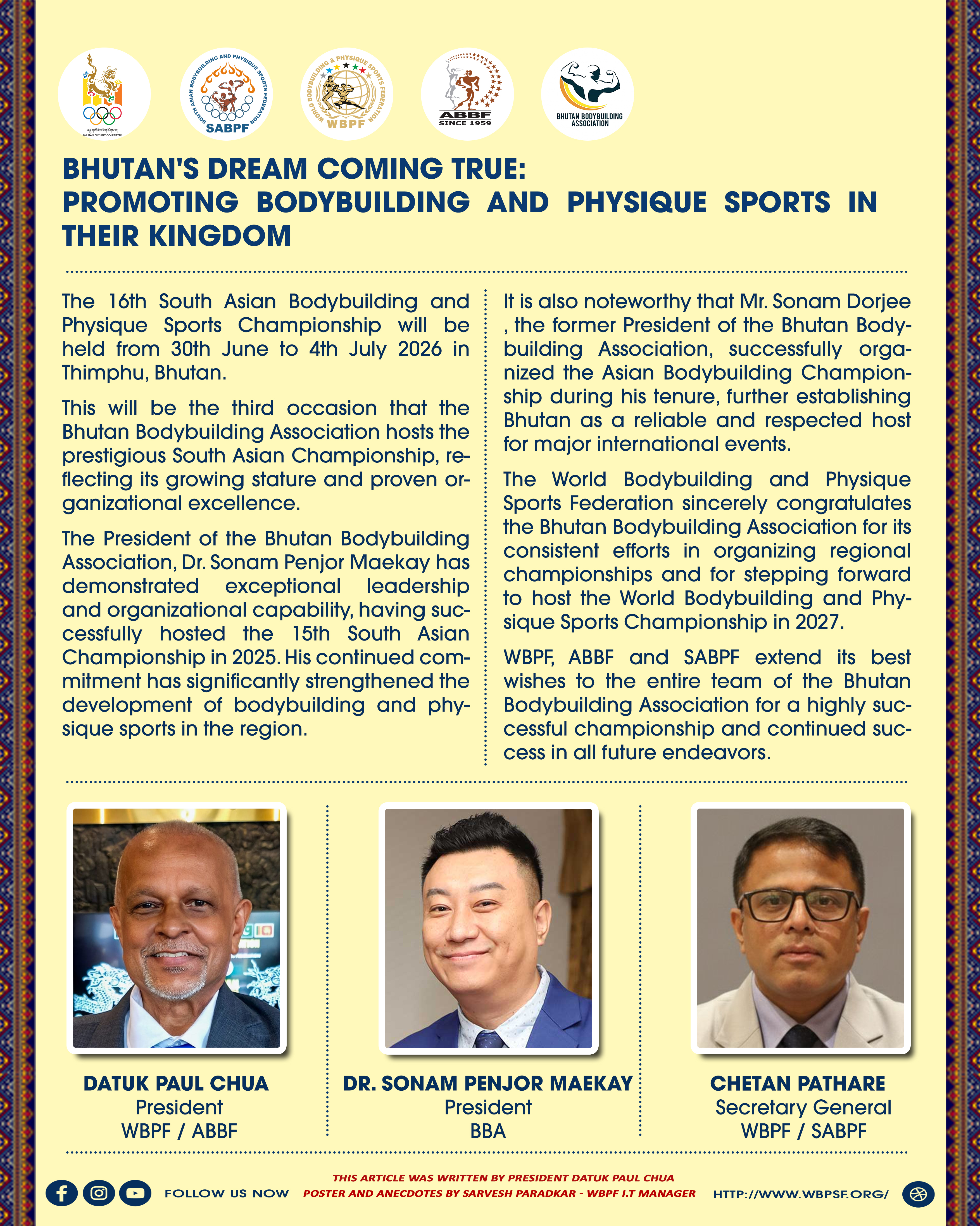 Bhutan's Dream Coming True: Promoting Bodybuilding & Physique Sports In Their Kingdom...