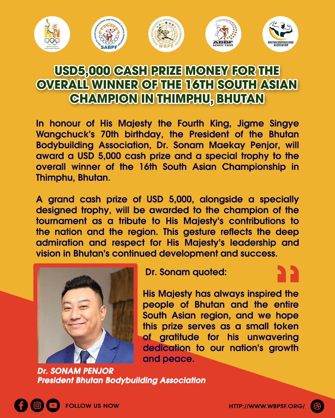 USD 5000.00 Cash Prize For The Overall Winner Of The 16th South Asian Champion In Thimphu, Bhutan...
